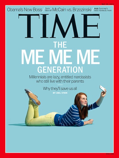 I don’t know if anyone else read last week’s Time magazine’s story purportedly written about our generation, the alleged ‘Generation Y’? It makes for an interesting, although predictable, read. Joel Stein’s article is titled “The Me Me Me Generation….And Why They Will Save Us All”…complemented by the obligatory photo of a girl taking the annoyingly styled ‘Selfie’.